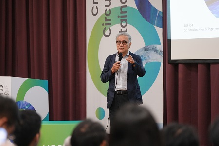Charles Huang, Chairman of the Circular Taiwan Network, called for breaking linear thinking and advancing Circular Collaboration for Climate Crisis (CC4CC). Only through cross-industry and international cooperation can a sustainable ecosystem be built, citing the limited impact of global carbon reduction efforts over the past 30 years.