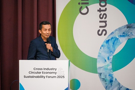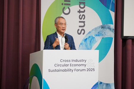 中華紙漿董事長黃鯤雄以「From Forest to Purpose」為題,闡述如何透過責任林業管理與循環製程,將紙漿應用擴展至生物纖維與低碳包裝材料,並結合能源轉型,目標在 2030 年達到 50% 綠能自給,展現原物料產業永續創新的決心。